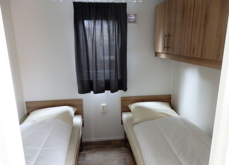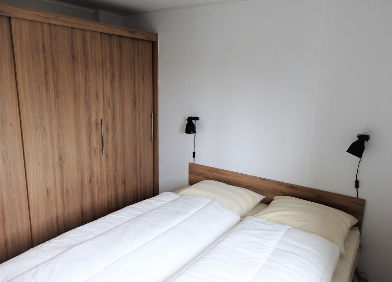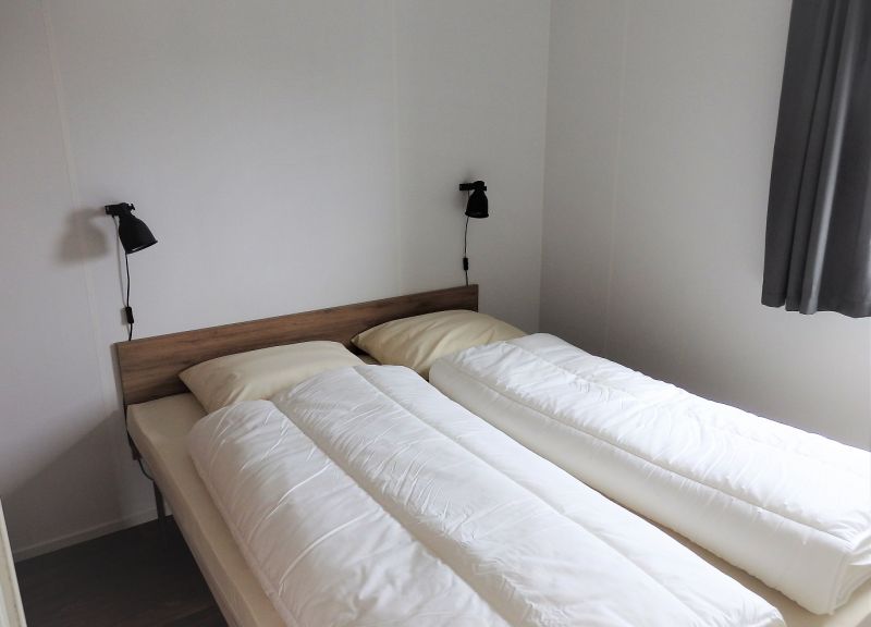 Slaapkamers: De woning heeft 2 slaapkamers, de grote slaapkamer is voorzien van een tweepersoonsbed van 160 cm breed, grote kastenwand met schuifdeuren en heeft een groot openslaand raam. De kleine slaapkamer heeft 2 aparte bedden van 80 cm breed, heeft twee ruime opbergkasten en een openslaand raam. De bedden zijn voorzien van binneveringmatrassen en hygyenische comforthoezen, dekbedden (4-seizoenen) en kussens zijn aanwezig, Overig bedden- en linnengoed e.d. dient u zelf mee te nemen.