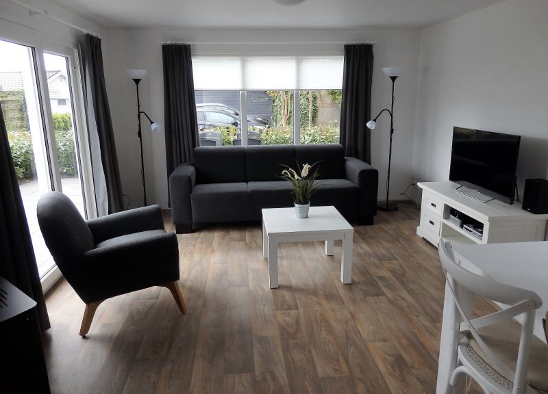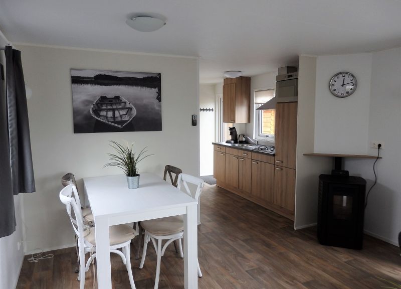 Kamer: De kamer is ruim van opzet met openslaande deuren aan de tuinkant en een openslaand raam bij de royale eethoek, een royale driezitsbank, een comfortabele fauteuil, eettafel met 4 stoelen, grote flatscreen TV, een stereo met cd speler en de verwarming geschied met een sfeervolle pellet kachel.