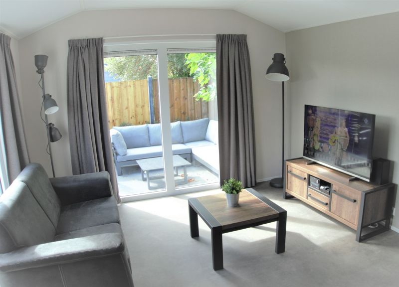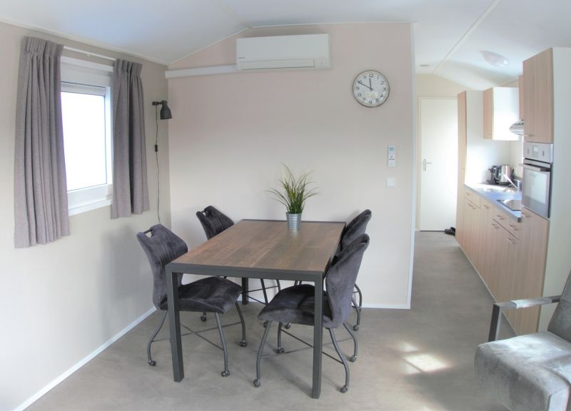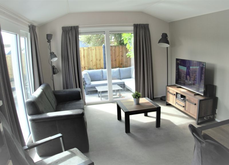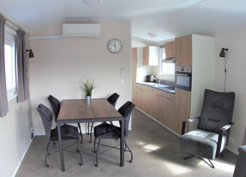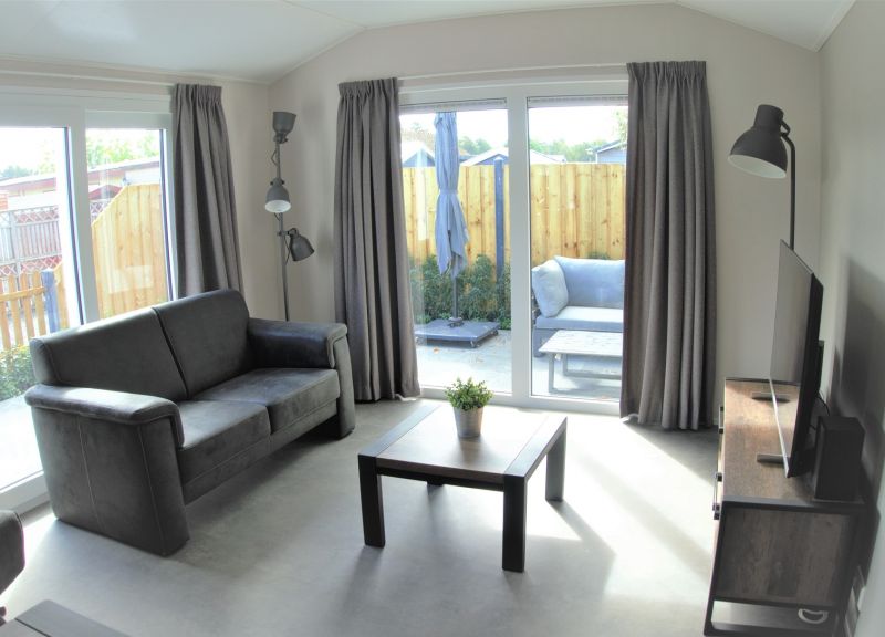 Kamer: De kamer is ruim van opzet met schuifpui welke toegang verleent tot het luxe betegelde terras. De kamer is luxe ingericht met o.a.: een ruime eettafel met 4 comfortabele stoelen, een luxe bank, een comfortabel feauteul, grote flatscreen TV, een stereo met cd speler en de verwarming geschied met een sfeervolle pellet kachel en er is airco aanwezig