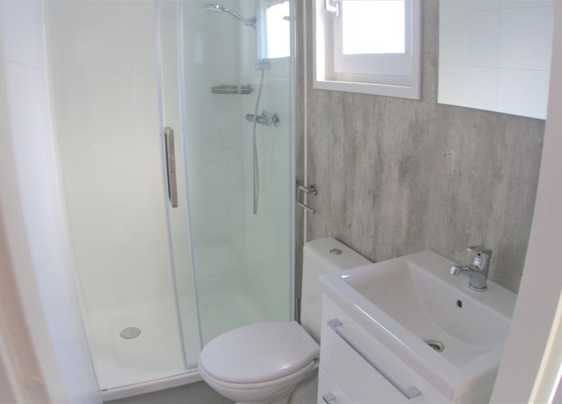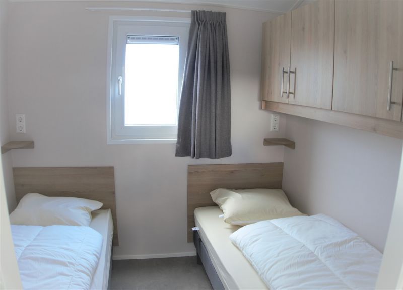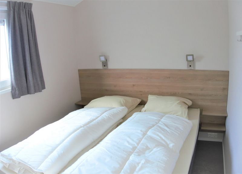 Slaapkamers: De woning heeft 2 slaapkamers, de grote slaapkamer is voorzien van een tweepersoonsbed van 160 cm breed, grote kastenwand met schuifdeuren en heeft een groot openslaand raam. De kleine slaapkamer heeft 2 aparte bedden van 80 cm breed, heeft twee ruime opbergkasten en een openslaand raam. De bedden zijn voorzien van binneveringmatrassen en hygyenische comforthoezen, dekbedden (4-seizoenen) en kussens zijn aanwezig, Overig bedden- en linnengoed e.d. dient u zelf mee te nemen.