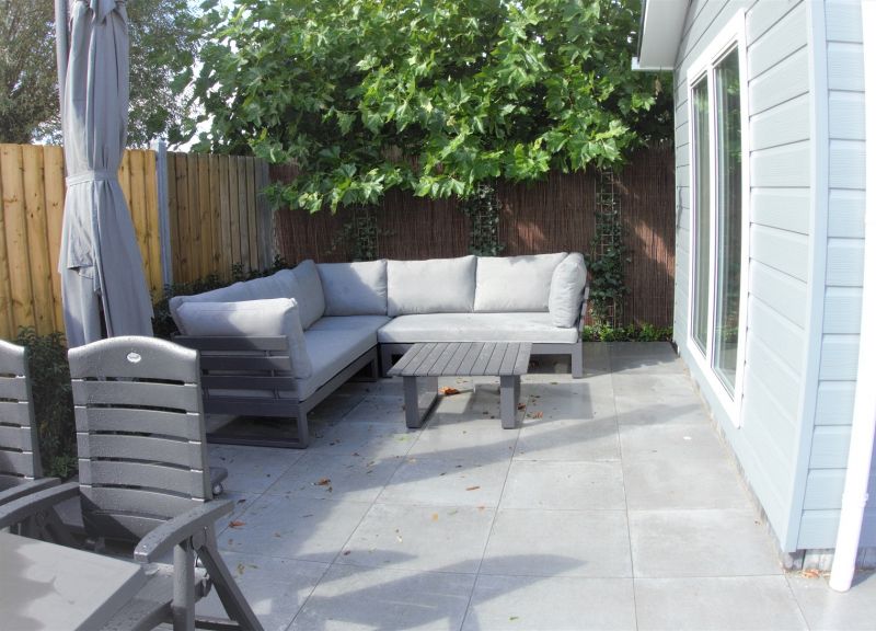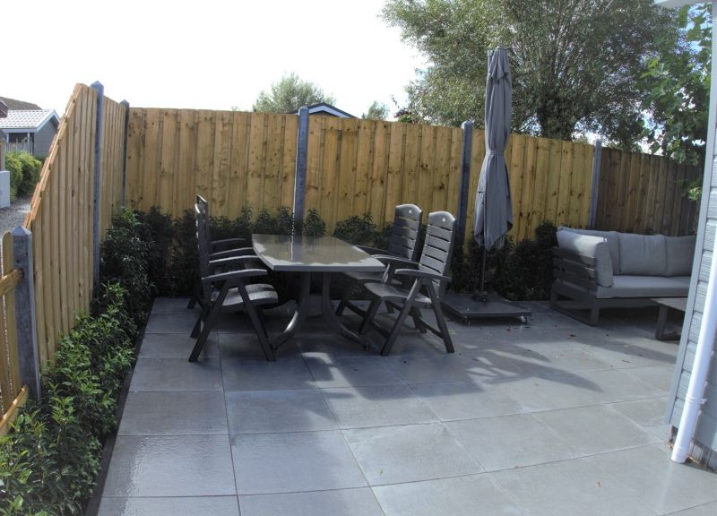 Tuinhuisje: In het tuinhuisje staat de wasmachine en droger, een extra koel/vriescombinatie, de kussens van de lounge- en het tuinset en een parasol. Er is hier tevens opslagruimte voor de fietsen.
