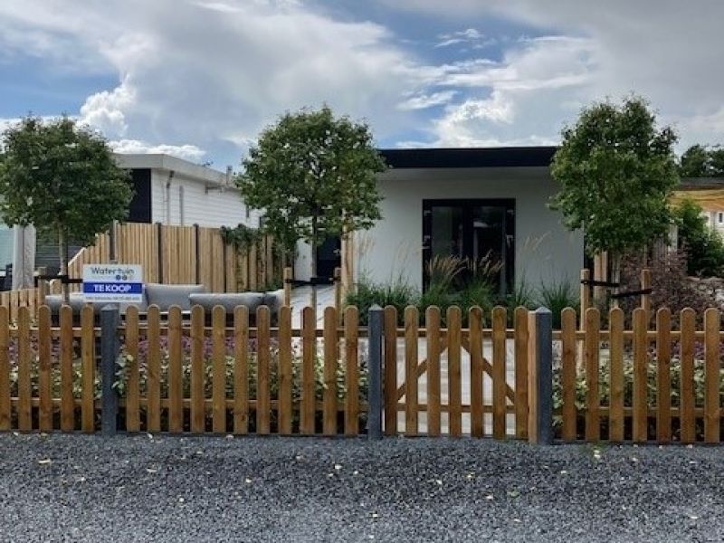 Op Waterzicht 7 is deze mooie luxe nieuwe 4/5 persoons vakantiewoning met aangebouwde veranda geplaatst. Het betreft een mooi perceel wat geheel is betegeld en beplant. De ligging van het perceel ligt direct aan de boulevard, geeft veel privacy en heeft vrij uitzicht op de brede vaart. Aan de steiger kunt u uw boot af meren, ook kunt hier prima vanaf vissen en/of zwemmen. De afwerking van de woning is van een hoog niveau en de buitenzijde is echt onderhoud vrij.